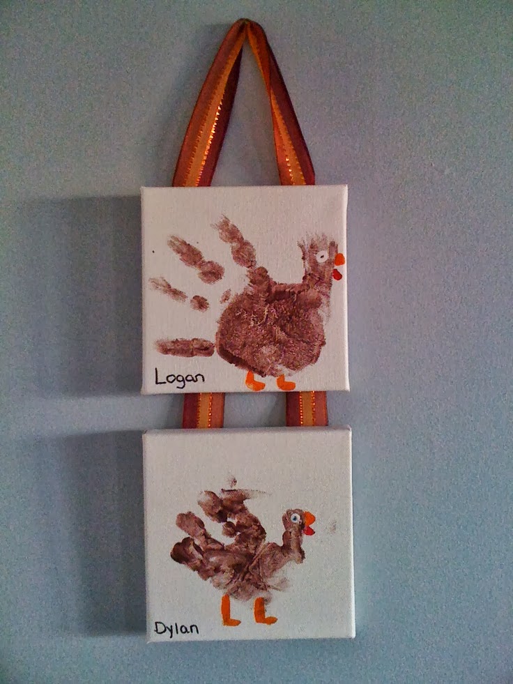 Indulgy has this cute idea with a more traditional handprint turkey. I love using canvas and always have plenty on hand. We have a few of these but used red, yellow, and orange as the feathers.