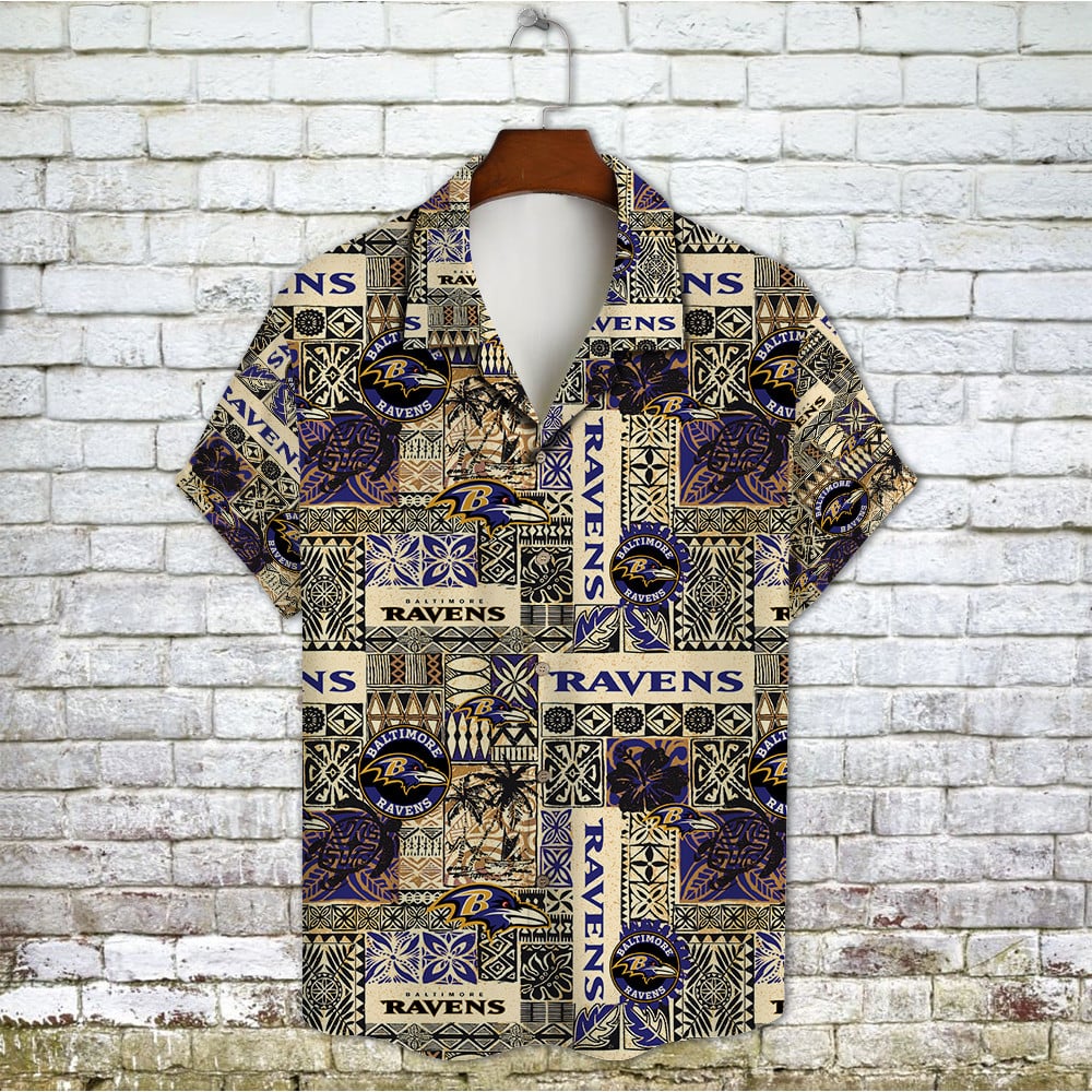 Embrace the Island Spirit: Our Premium Baltimore Ravens 2023 AOP Hawaiian Shirt V1