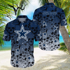 Embrace the Island Spirit: Our Premium Dalals Cowboys NFL Halloween Aloha Skull 3D Hawaiian Shirt