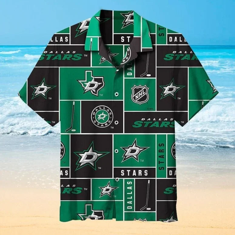 Embrace the Island Spirit: Our Premium Dallas Stars Hockey Grid Hawaiian Shirt