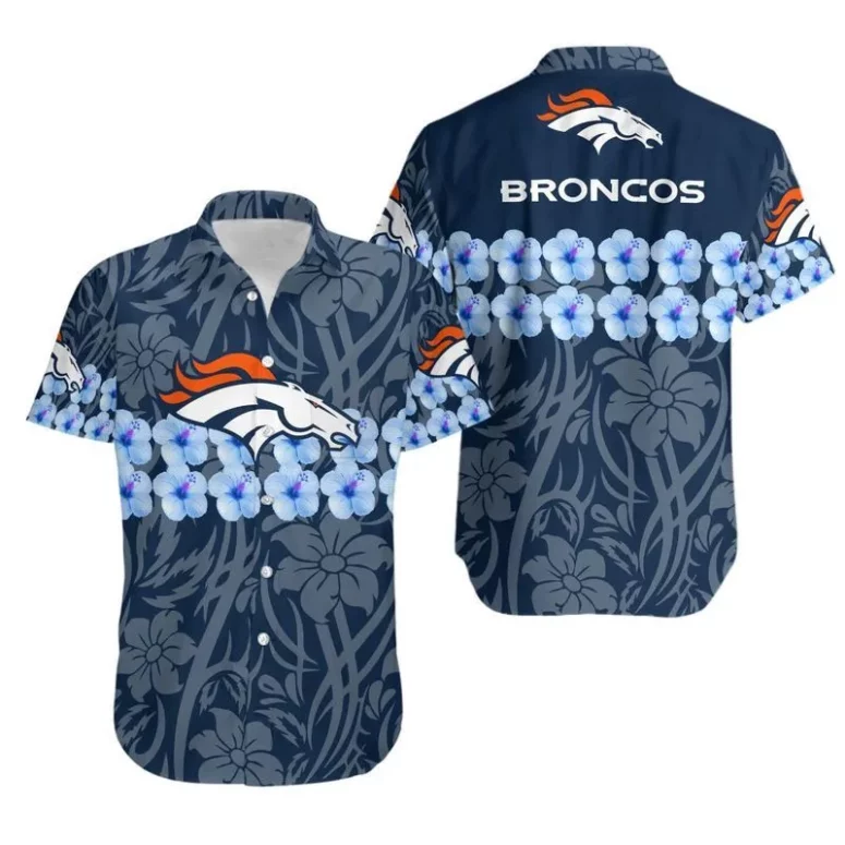 Embrace the Island Spirit: Our Premium Denver Broncos Blue Hibiscus Bloom Hawaiian Shirt