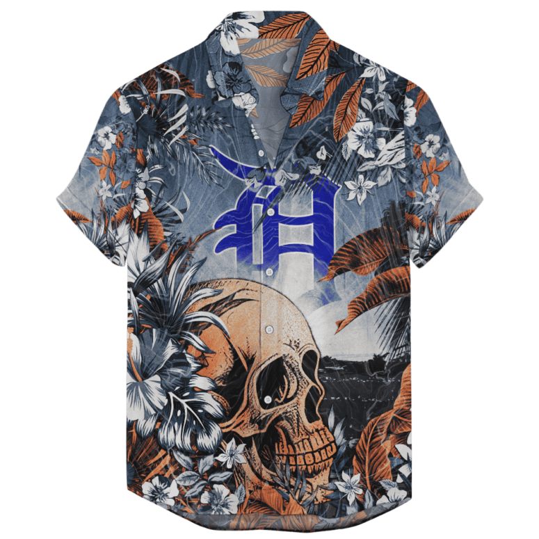 Embrace the Island Spirit: Our Premium Detroit Tigers Coastal Skull Hawaiian Shirt