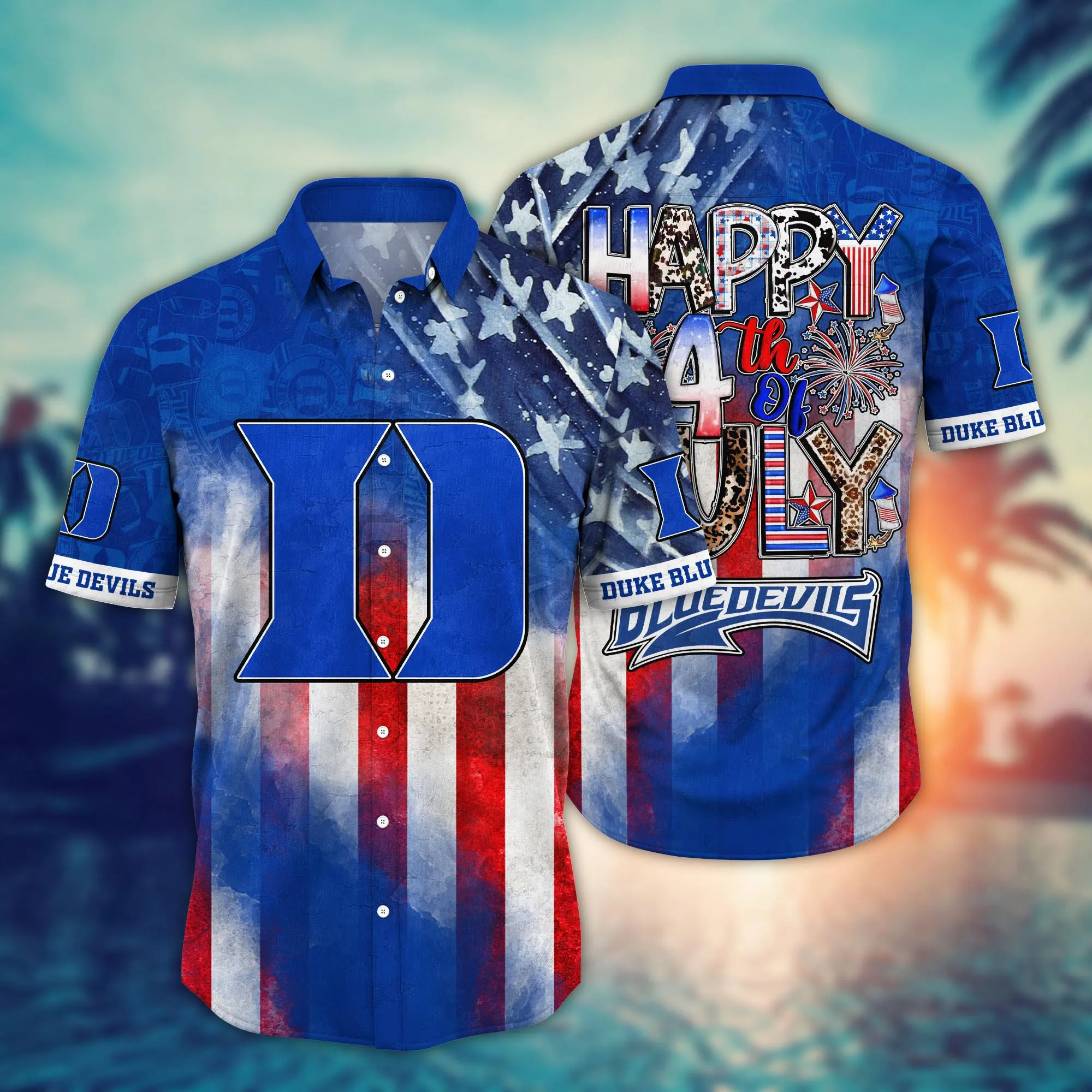 Embrace the Island Spirit: Our Premium Duke Blue Devils 4th Of July America Flag Pattern Hawaiian Shirt