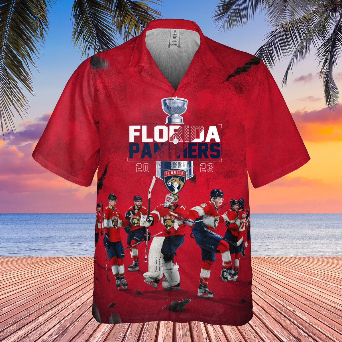 Embrace the Island Spirit: Our Premium Florida Panthers Champions 2023 On Red Background 3D Hawaiian Shirt