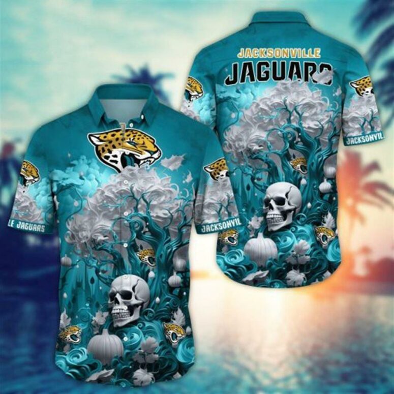 Embrace the Island Spirit: Our Premium Jacksonville Jaguars Tropical Skull Hawaiian Shirt