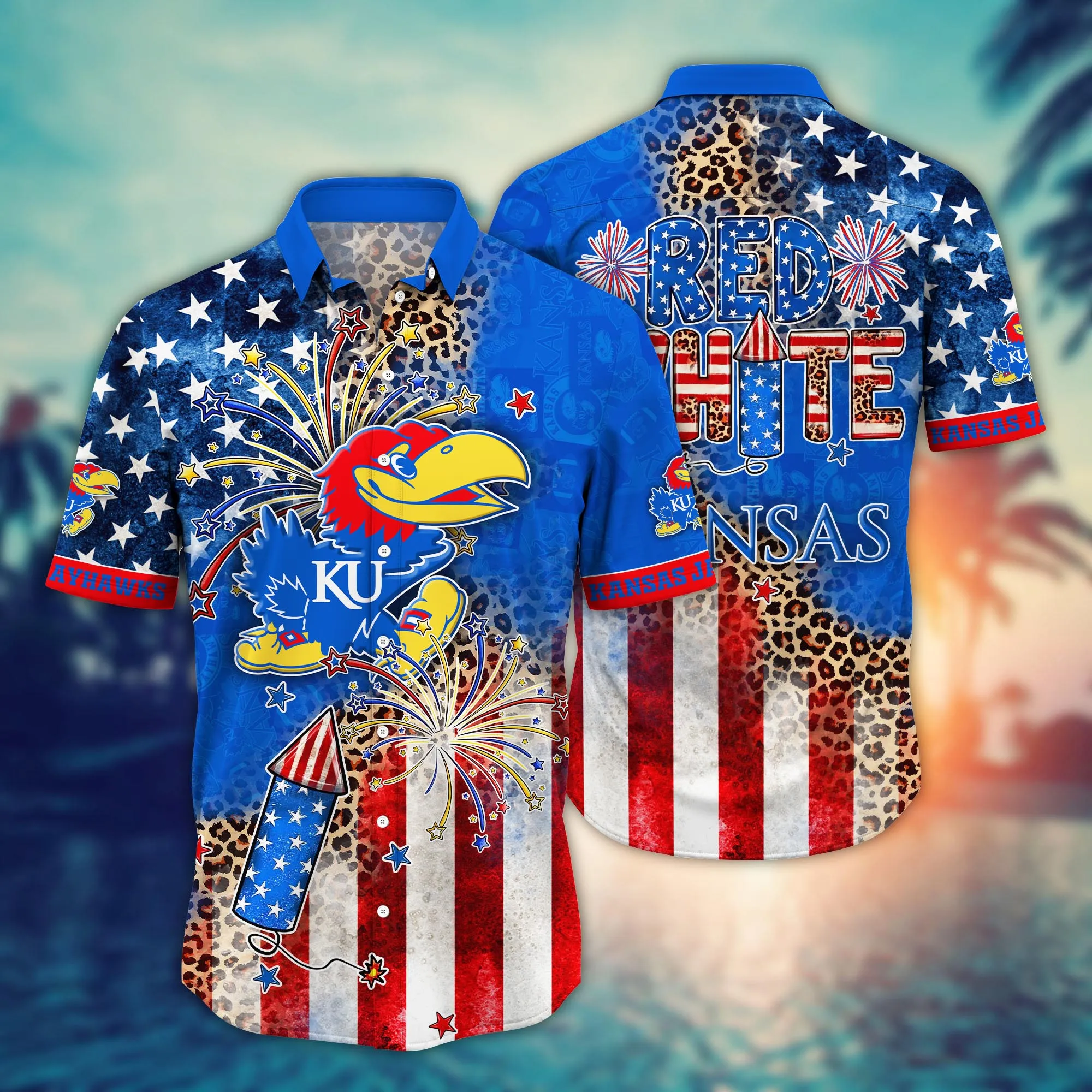 Elevate your wardrobe with our premium Kansas Jayhawks US Flag Independence Day Hawaiian Shirt, thoughtfully designed for both men and women. Whether you are strolling along a sun-drenched beach, heading out for a casual date, or attending a festive summer or Christmas party, this versatile, short-sleeve button-down is your perfect companion. Vibrant and stylish, it also makes an exceptional gift for family and friends!