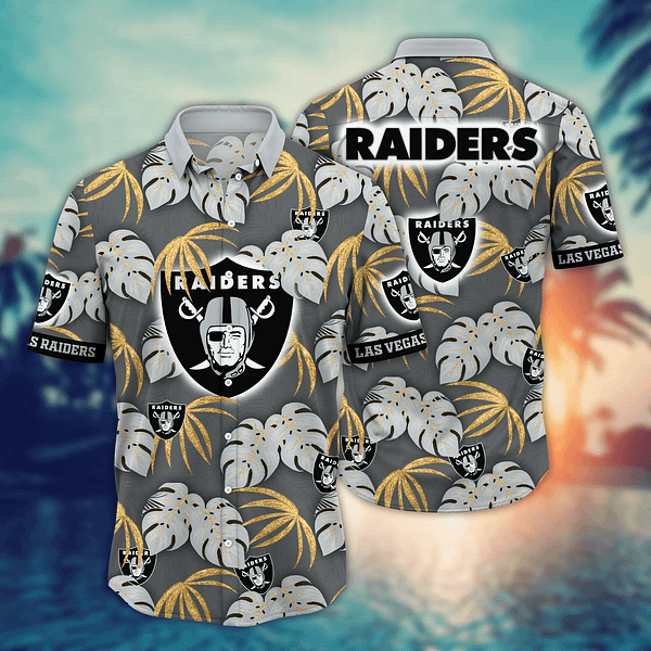 Embrace the Island Spirit: Our Premium Las Vegas Raiders Palm Tree Leaves NFL Football Team Hawaiian Shirt