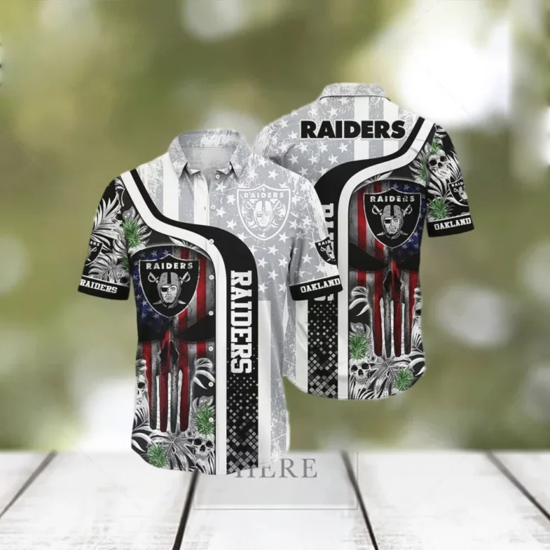 Embrace the Island Spirit: Our Premium Las Vegas Raiders Patriotic Skull Hawaiian Shirt
