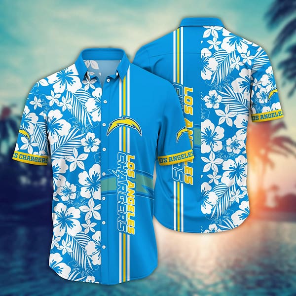 Los Angeles Chargers White Hibiscus NFL Football Team Hawaiian Shirt