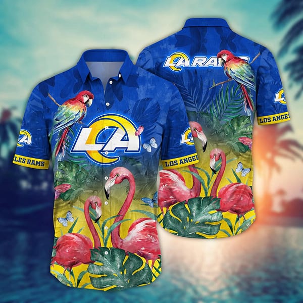 Embrace the Island Spirit: Our Premium Los Angeles Rams Pink Flamingo NFL Football Team Hawaiian Shirt