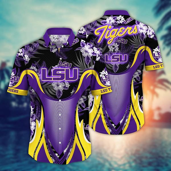 Embrace the Island Spirit: Our Premium LSU Tigers Tropical Leaf Armor Design Hawaiian Shirt