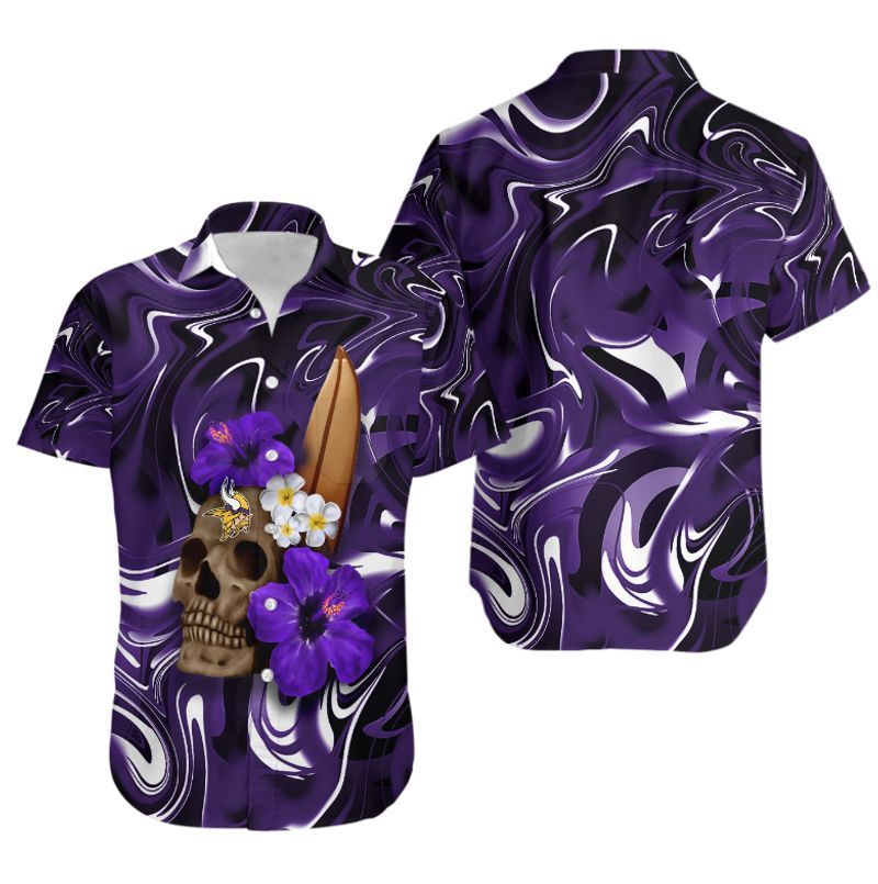 Elevate your wardrobe with our premium Minnesota Vikings Skull and Hibiscus Flower NFL Football Team Hawaiian Shirt, thoughtfully designed for both men and women. Whether you are strolling along a sun-drenched beach, heading out for a casual date, or attending a festive summer or Christmas party, this versatile, short-sleeve button-down is your perfect companion. Vibrant and stylish, it also makes an exceptional gift for family and friends!
