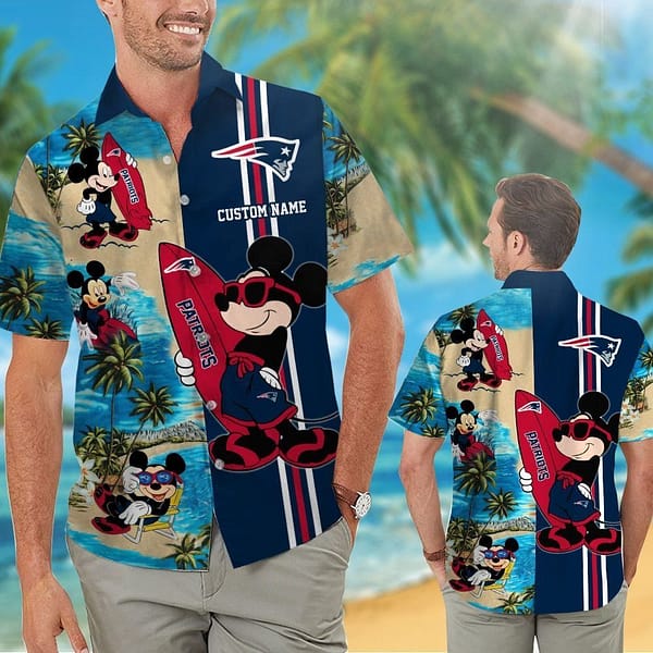 Embrace the Island Spirit: Our Premium New England Patriots Mickey Mouse Custom Name NFL Football Team Hawaiian Shirt