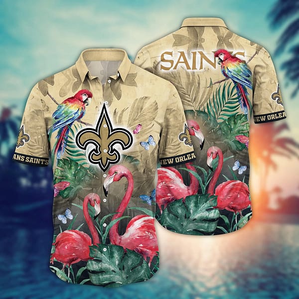 Embrace the Island Spirit: Our Premium New Orleans Saints Pink Flamingo NFL Football Team Hawaiian Shirt