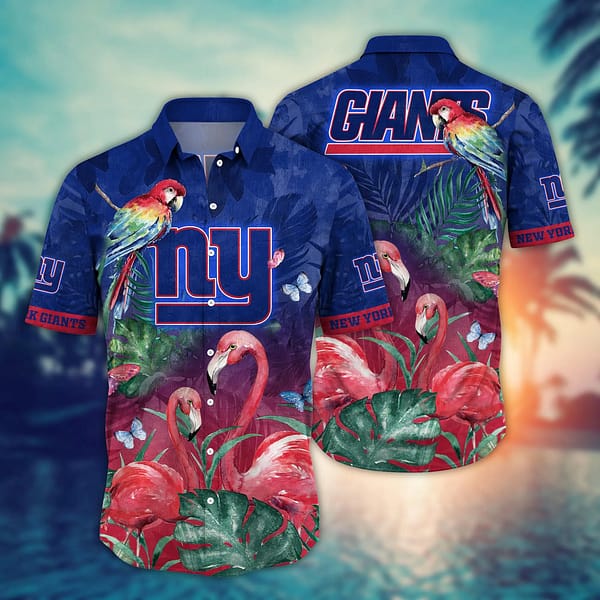 Embrace the Island Spirit: Our Premium New York Giants Pink Flamingo NFL Football Team Hawaiian Shirt