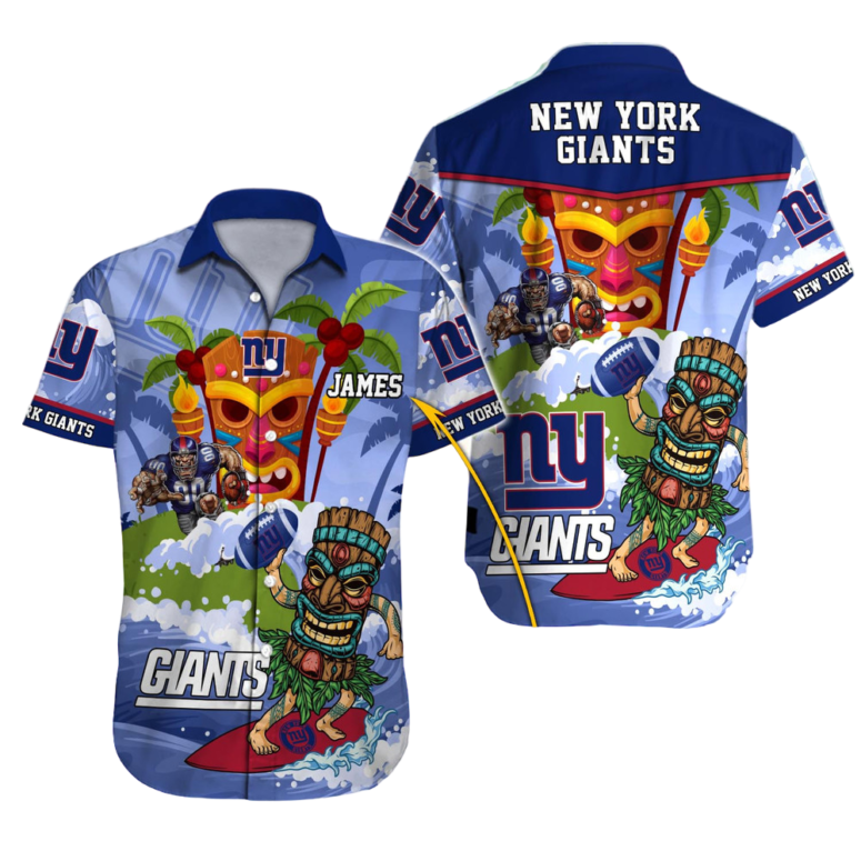Embrace the Island Spirit: Our Premium New York Giants Tiki Wave Personalized Hawaiian Shirt