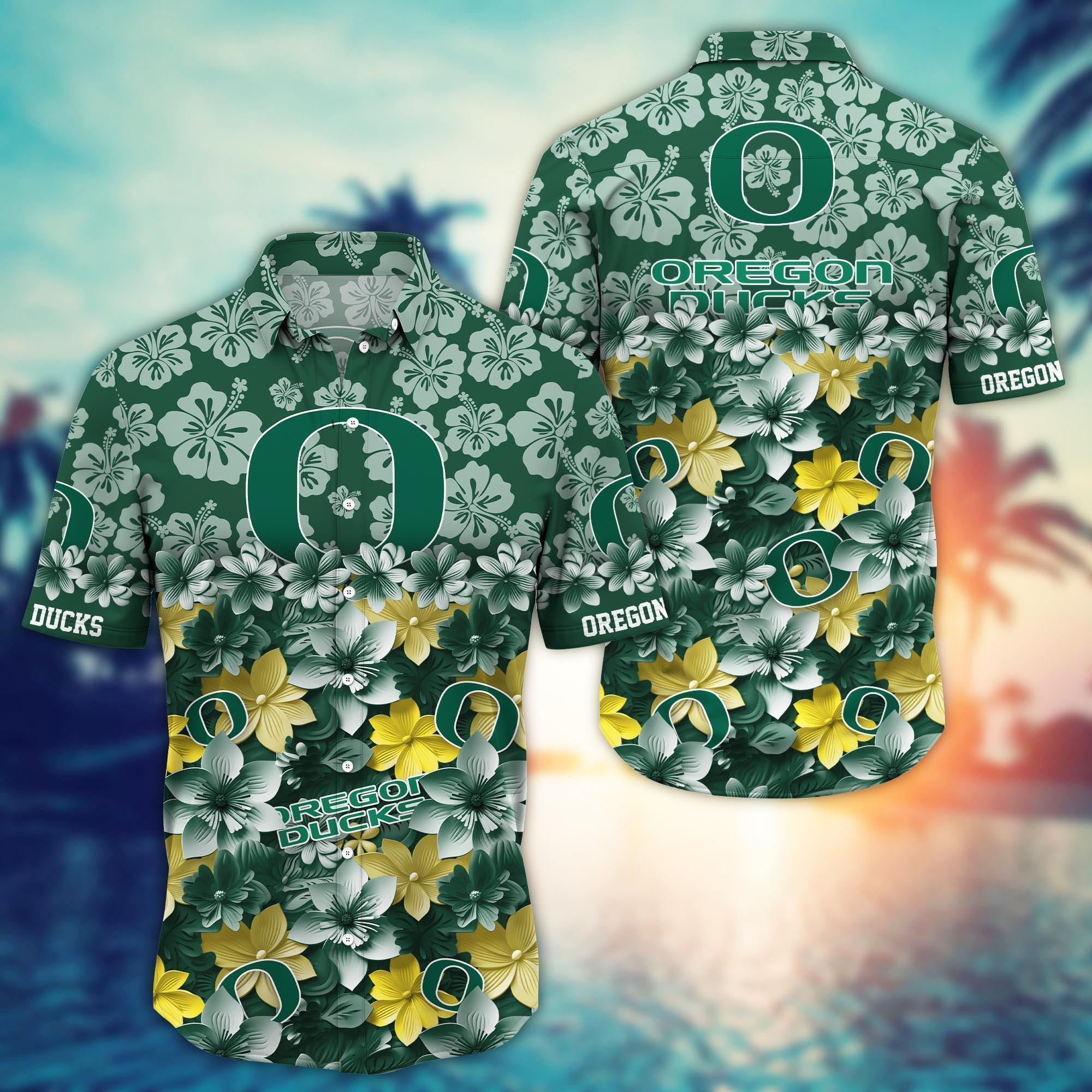Embrace the Island Spirit: Our Premium Oregon Ducks Floral Aloha Hawaiian Shirt