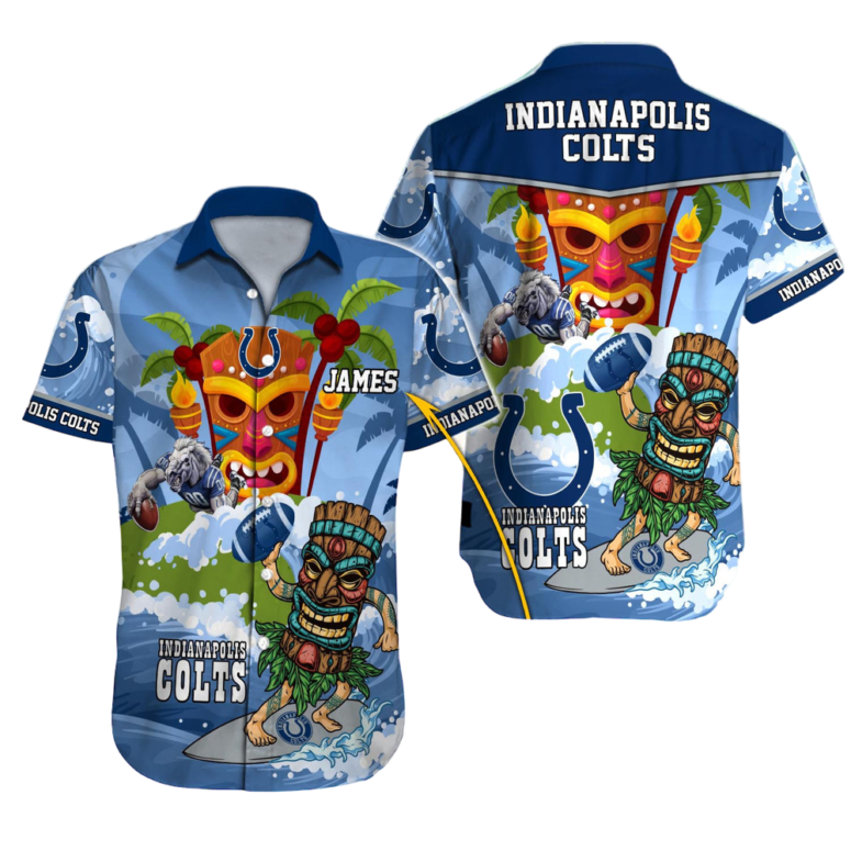 Elevate your wardrobe with our premium Personalized Indianapolis Colts Tiki Blue Thunder Aloha Shirt, thoughtfully designed for both men and women. Whether you are strolling along a sun-drenched beach, heading out for a casual date, or attending a festive summer or Christmas party, this versatile, short-sleeve button-down is your perfect companion. Vibrant and stylish, it also makes an exceptional gift for family and friends!