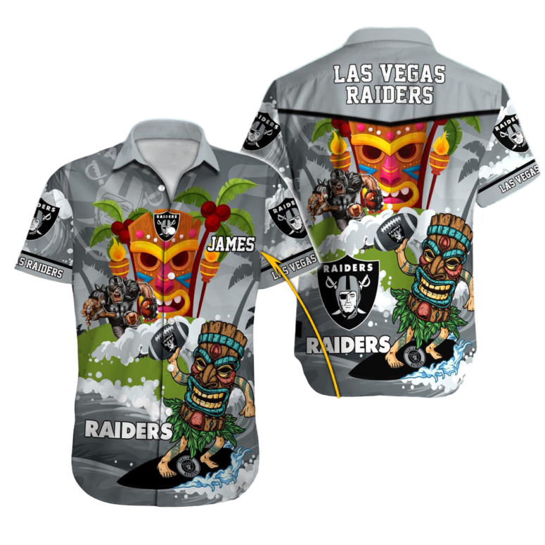Embrace the Island Spirit: Our Premium Personalized Las Vegas Raiders Tiki Adventure Hawaiian Shirt
