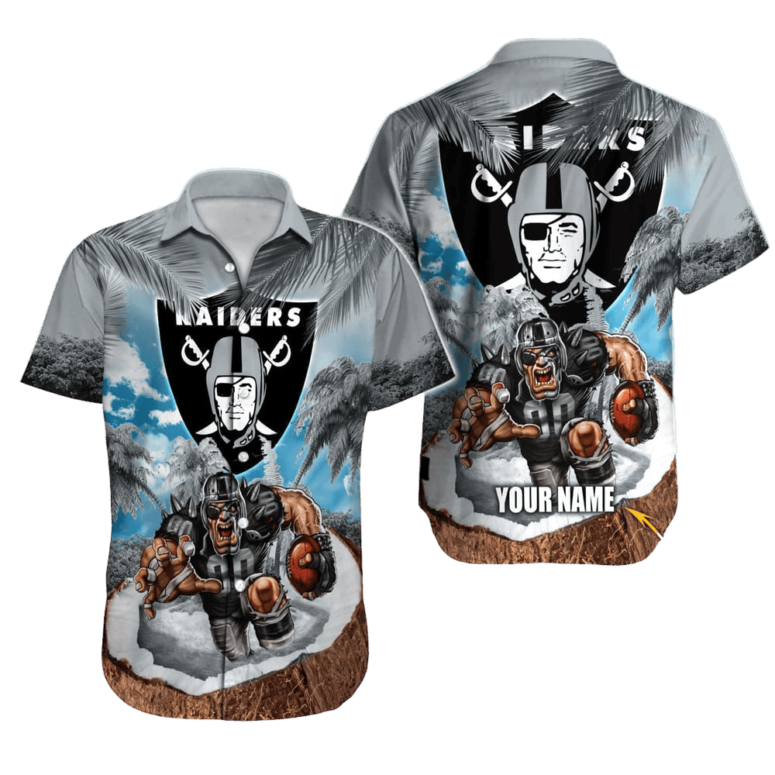 Embrace the Island Spirit: Our Premium Personalized Las Vegas Raiders Tropical Island Blitz Hawaiian Shirt