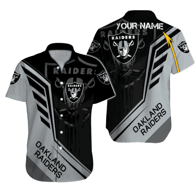 Embrace the Island Spirit: Our Premium Personalized Las Vegas Raiders Velocity Stripe Hawaiian Shirt