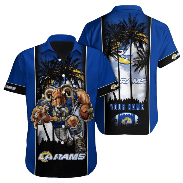 Embrace the Island Spirit: Our Premium Personalized Los Angeles Rams Sunset Palm Hawaiian Shirt