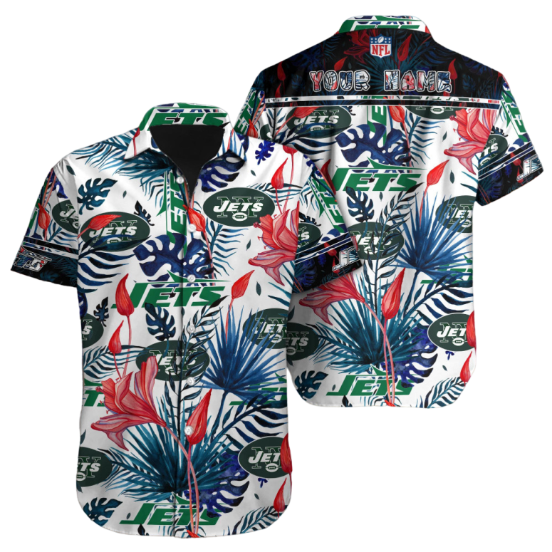 Embrace the Island Spirit: Our Premium Personalized New York Jets Botanical Breeze Hawaiian Shirt