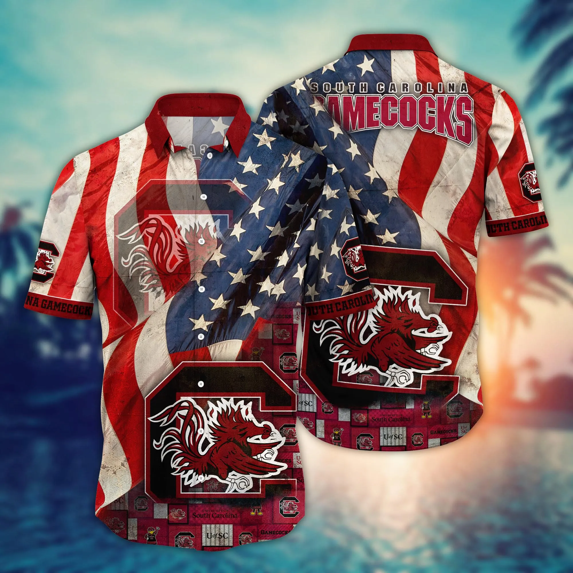 Elevate your wardrobe with our premium South Carolina Gamecocks US Flag Pattern 4th Of July Hawaiian Shirt, thoughtfully designed for both men and women. Whether you are strolling along a sun-drenched beach, heading out for a casual date, or attending a festive summer or Christmas party, this versatile, short-sleeve button-down is your perfect companion. Vibrant and stylish, it also makes an exceptional gift for family and friends!